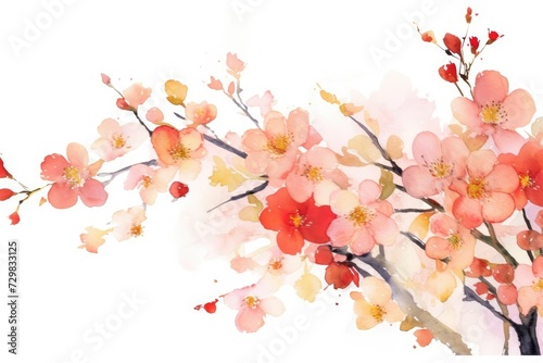 Fototapeta premium Abstract watercolor art background with pink red peach flowers and gold line....