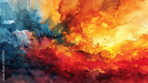 Obraz premium Abstract watercolor background combining red, orange and yellow colors