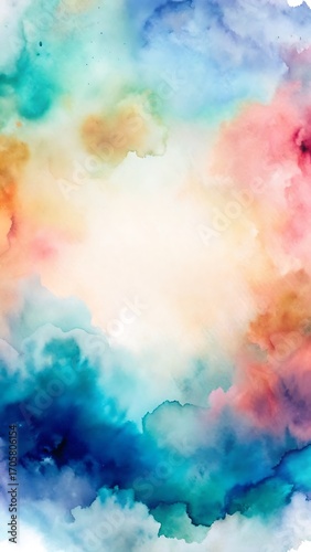 © Shahidul, Naklejka premium Abstract Watercolor Background: Serene Teal, Pink, and Gold Hues, Soft Dreamy Mood, Perfect for Branding, Websites, and Design Projects, High-Resolution Image.