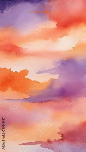 Fototapeta premium Abstract watercolor background sunset sky orange purple