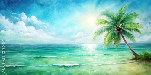 © Anulak, Obraz premium Abstract watercolor background with green sea palm