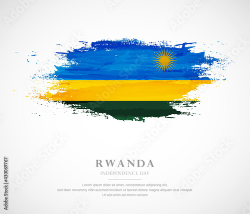 © Akshay, Obraz premium Abstract watercolor brush stroke flag for independence day of Rwanda