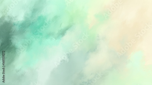 © Anat art, Fototapeta premium Abstract Watercolor Design Featuring Soft Mint Green and Beige Tones With a Dreamy and Serene Atmosphere at Dawn