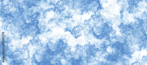 Fototapeta premium Abstract watercolor featuring a Blue and white sky with wispy clouds. Pastel mottled border texture and blurred grunge design. Blue texture background on white surface granite