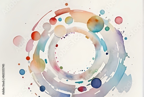 © Yuliia, Obraz premium Abstract watercolor illustration featuring colorful concentric circles and dynamic splashes, isolated on a white background. Ideal for modern art projects, backgrounds, and design elements.