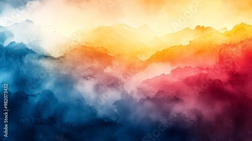 © racesy, Naklejka premium Abstract Watercolor Landscape of Mountains