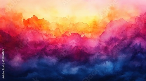 © Achaa, Fototapeta premium Abstract Watercolor Landscape with Gradient Colors
