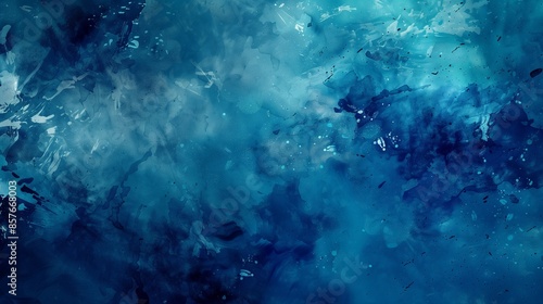 Obraz premium Abstract watercolor-like splashes in deep blue and aqua, fluid and artistic.