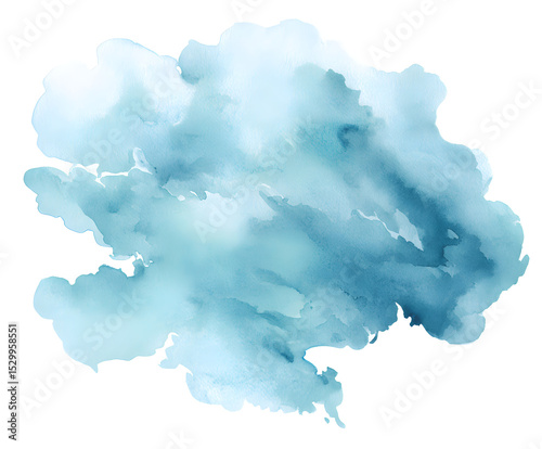 © Dawid, Obraz premium Abstract Watercolor Stain in Blue Tones - Artistic Wash Effect on White Background for Creative Design Projects