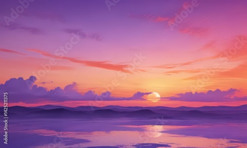Fototapeta premium Abstract watercolor sunset, vibrant oranges & purples , digital, pattern,...