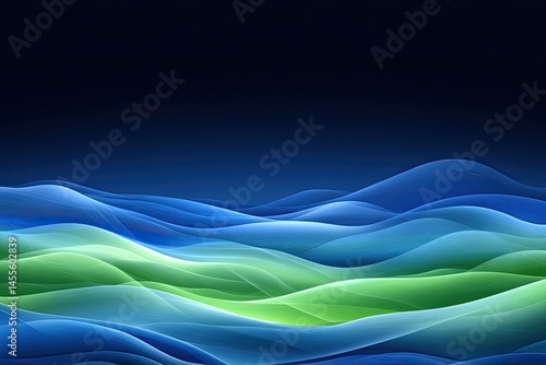 Fototapeta premium Abstract wave formations of blue and green. Layered, smooth, flowing shapes creating a dynamic, ethereal landscape