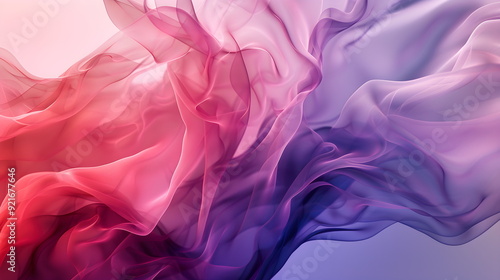 © xuxu, Obraz premium Abstract wave in iridescent neon-rainbow shades, pink, purple, red, blue. Waves of smoke or fabric flying in the wind. Iridescent fabric, holographic texture. Banner background with space for text