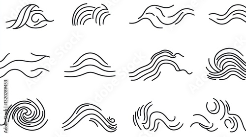 Obraz premium Abstract wave line art patterns design, white background, graphic design element