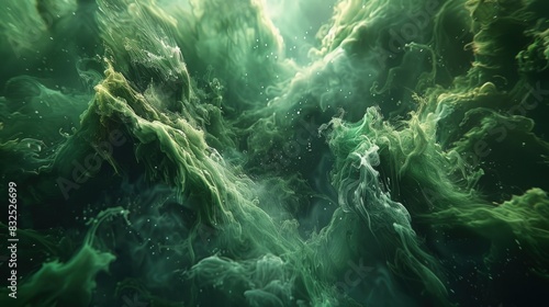 © pengedarseni, Fototapeta premium Abstract wave of green smoke. Smoke abstract background