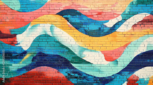 © Thiago, Obraz premium Abstract wave pattern painted on a brick wall. Vibrant Street Graffiti Wall. Illustration