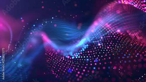 Obraz premium Abstract wave pattern with vibrant dots and flowing lines in purple and blue...
