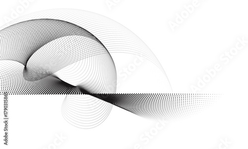 Fototapeta premium Abstract waveform dot swirls on white background.