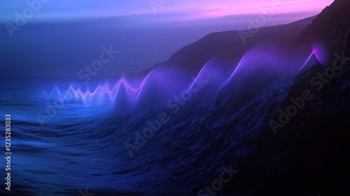 © Penatic Studio, Fototapeta premium Abstract Waveform Over Coastal Cliffs At Dusk