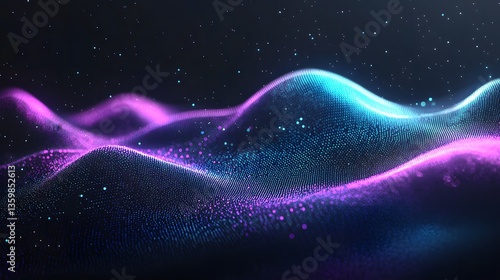 © virza, Obraz premium Abstract Waves Displaying Sparkling Data Points Across The Dark Background