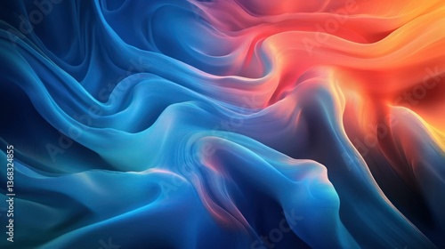 © Akstem, Obraz premium Abstract waves flow together in harmonious blue, orange, and red hues.
