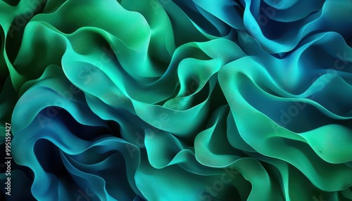 Fototapeta premium Abstract waves in blue and green colors on a textured background.