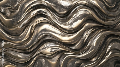 Fototapeta premium Abstract waves in silver and gold metallic reflections