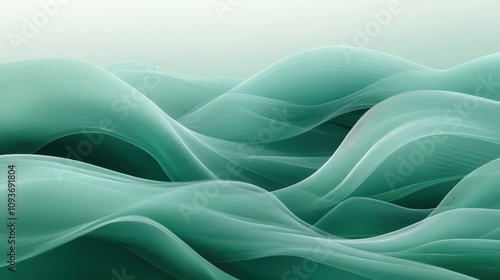 Fototapeta premium Abstract waves in soft green tones create a calming visual effect.