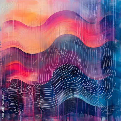 © Amir, Obraz premium Abstract Waves in Sunset Colors