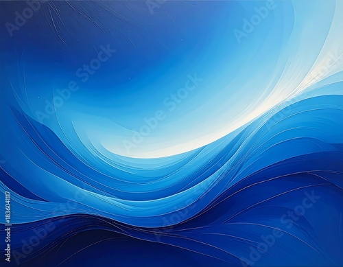 © tira, Fototapeta premium Abstract waves in varying shades of blue, flowing toward light