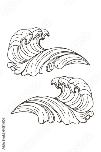© MdRanju, Naklejka premium Abstract Waves Line Art Set Black & White Decorative Elements.