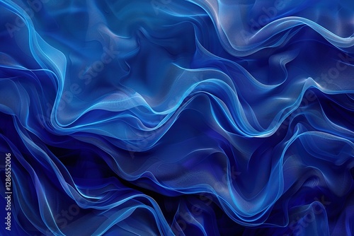 © Nataliia, Obraz premium Abstract waves of glowing blue fabric in a flowing smooth pattern