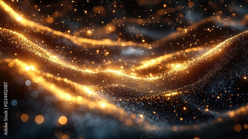 © darion, Obraz premium Abstract waves of glowing particles create a mesmerizing visual effect.