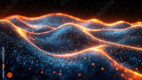 © darion, Obraz premium Abstract waves of glowing particles in vibrant colors.