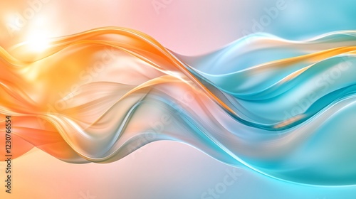 © atdigit, Obraz premium Abstract Waves of Orange and Blue Flow in a Serene Ambient Background
