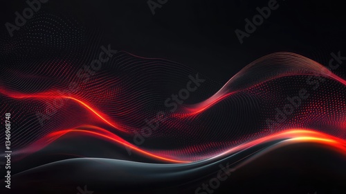 © budi, Naklejka premium Abstract waves of red and black flow gracefully, creating a dynamic visual rhythm in a digital landscape