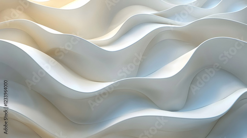 Fototapeta premium Abstract waves of smooth, white material create a serene, flowing texture.
