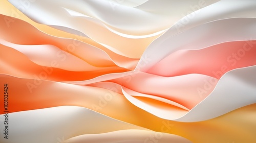 © Phirakhup, Obraz premium Abstract waves of soft fabric in orange, pink, and white tones.