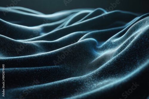 Obraz premium Abstract waves of textured fabric in dark blue, creating a dynamic and...