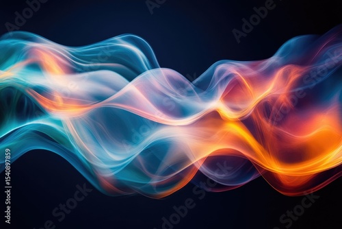 Naklejka premium Abstract waves of vibrant blues and oranges flow across a dark background,...