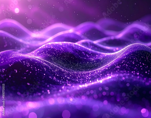 Obraz premium Abstract waves of vibrant purple light with sparkling particles