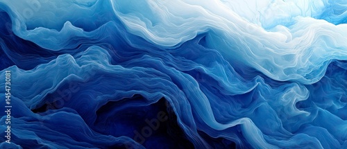 © Qbertstudio, Obraz premium Abstract waves present swirling patterns using navy blue and light blue, forming undulating forms with a fluid design.