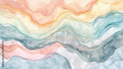 Obraz premium Abstract waves watercolor background. Pastel aesthetic watercolor texture.