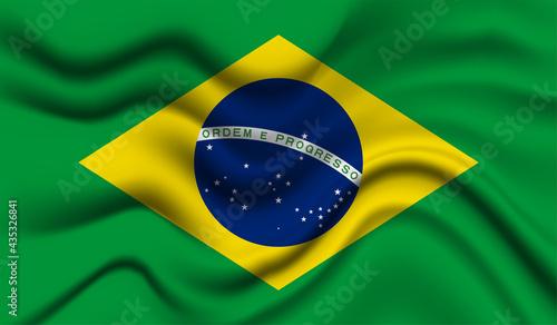© Akshay, Fototapeta premium Abstract waving flag of Brazil with curved fabric background. Creative realistic waving flag of Brazil vector background