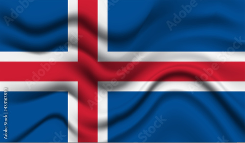 © Akshay, Obraz premium Abstract waving flag of Iceland with curved fabric background. Creative realistic waving flag of Iceland vector background