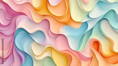 © Lucija, Fototapeta premium Abstract, wavy background in pastel colors, vector illustration