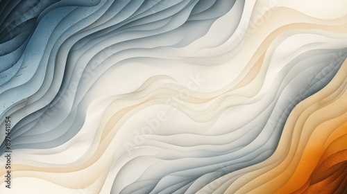 © ชลธิชา สว่างวงค์, Obraz premium Abstract wavy background with shades of blue, brown, and white. The lines create a dynamic and flowing pattern.