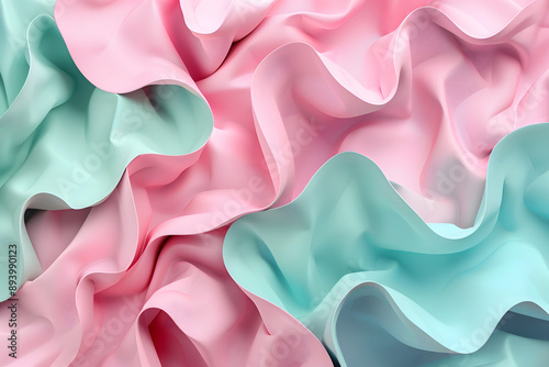 © Oleksandr Sylenko, Obraz premium abstract wavy 3D background in pink and green colors. mint color. matte texture
