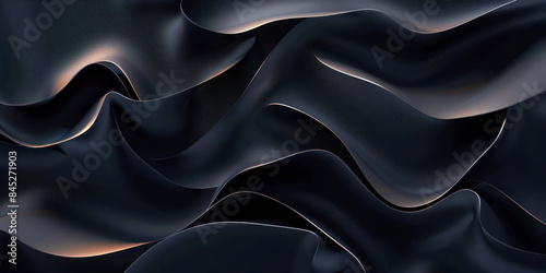 Obraz premium Abstract Wavy Dark Metallic Surface. An elegant abstract banner featuring wavy, dark metallic surfaces with smooth curves and a subtle glow.