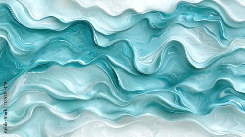 Obraz premium Abstract wavy design, turquoise and white background, digital art, possible...