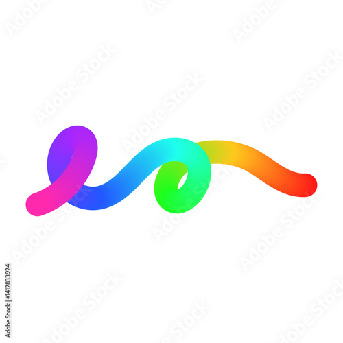 © Viktoria, Obraz premium Abstract wavy gradient lines with playful squiggle shapes, colorful ribbon elements, geometric doodle pattern, and fluid 3D design. Flat vector illustration isolated on white background.